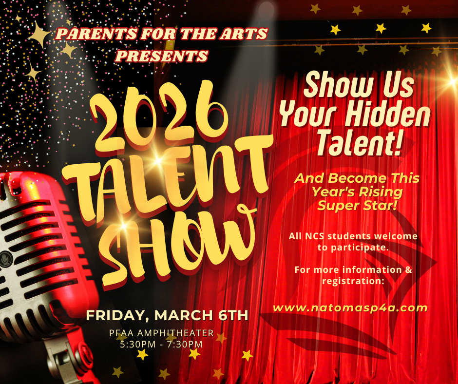 Parents for the Arts is excited to host the annual NCS Talent Show. Join us as students showcase their talents and compete for prizes!